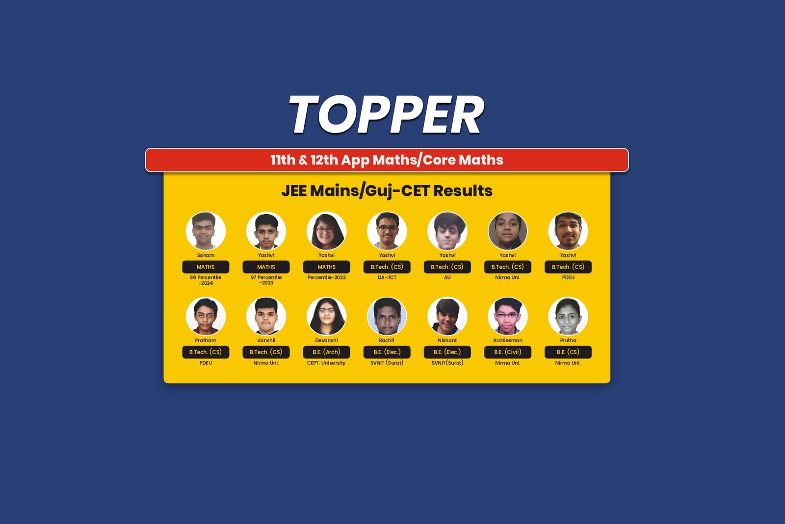 MATHS ACADEMY stands synonymous to quality education and maintaining its immaculate standards. Our’s is a boutique Academy aiming at excellence and have delivered School Toppers from the top CBSE Schools of Ahmedabad.